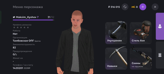 Подробное описание: Продам аккаунт.Состою в тамбовском ОПГ есть машина.есть торг