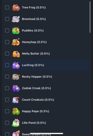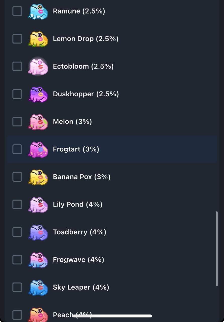 Тип подарка: ЖабаКраткое описание: 🐸【Жаба】🐸 Kissed Frog— ✨【#ВСЕ ВИДЫ】✨ЛЮБОЙ НА ВЫБОР В ОПИСАНИИ✨