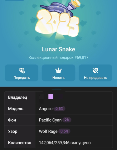 Тип подарка: ЗмеяКраткое описание: Lunarsnake 🔱Angelic 0.5%