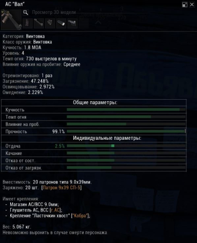 Подробное описание: АС «Вал». Обвес и характеристики как на скриншотах