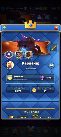 🧡 2в1🧡 Жир ак Cr колода 15-16 лвл 70+ емодзи 🏆 Clash of cl 15 их полу фул🥇, 25 арена, 62 уровень, 11000 кубков, 121 карт, 21 лег, Есть