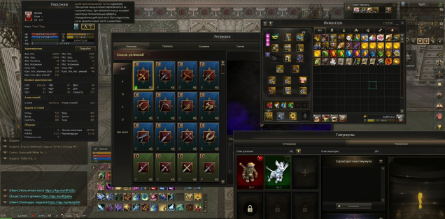 Описание: Дестр 110, расса камаэль, саб класс ШК 108. Одет в Благ.сет почета (1к рублей), красный гомункул 5 лвл, куча расходки, камни рун, выучен баф за улучшенный камень рун. Золотые сферы, коллекции за сферы, Привязка на вашу почту.