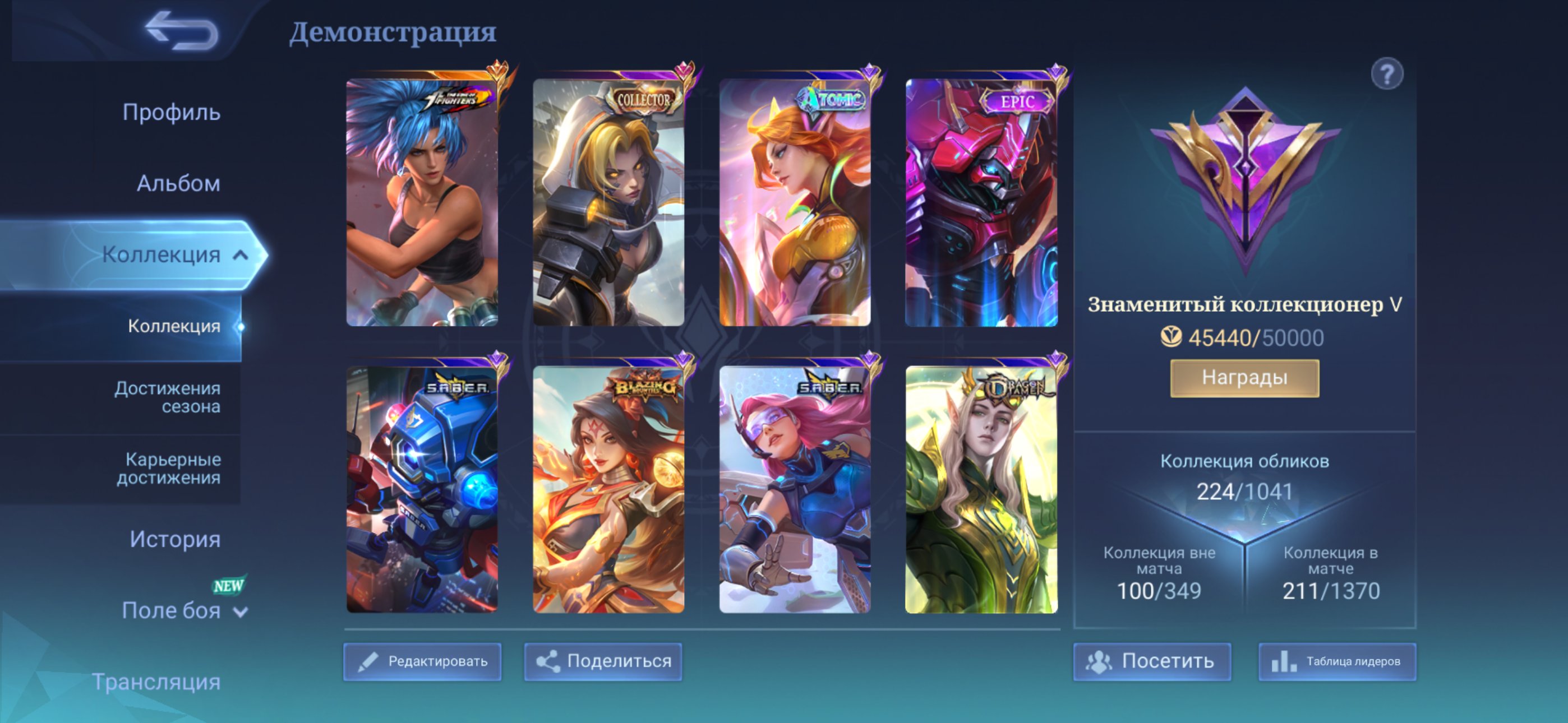 Краткое описание: 224 Skins ✨ Collector Natalia ✨Meowkin Hunter Lesley ✨Atomic Eudora ✨ Gaara✨ Скриншоты 👇