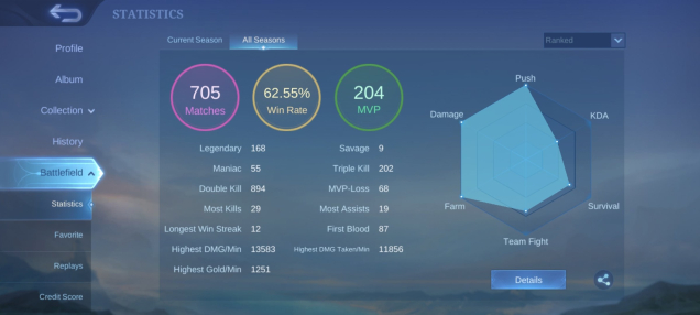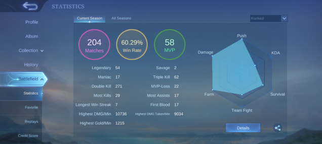 Подробное описание: Хороший аккаунт. Текущий сезон хороший вр. Без лишних привязок, мало игр, идеален для смурфа. Бесплатной смены ника — нет. Куплен М7 пропуск за 700 алмазов, прокачан на 44 уровень