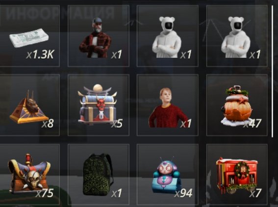 Инвентарь в кейсах и скинах 90 кк