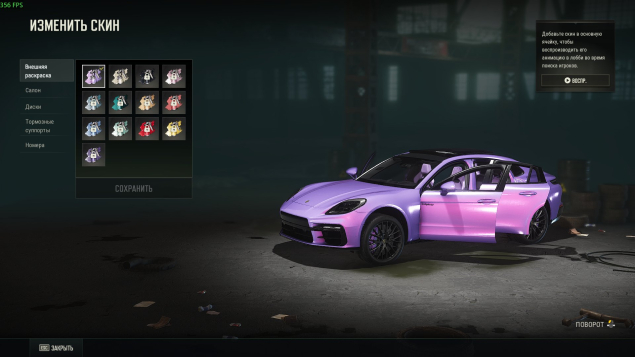 Коллаборации:Porshe Фулл тачки + ЛОББИ: 1) Топовая Panamera + самый дорогой комплект краска + салон + диски+ супорта ЦВЕТ PEARLESCENT LILAC за 4 000 жетонов!!!;2)911+ краска RIVERA BLUE;3)Cayenne (ЛОББИ) + ФУЛЛ стиль «вне трассы» + ФУЛЛ стиль «Ценитель PORSСHE»+ФЛАГ+парашют