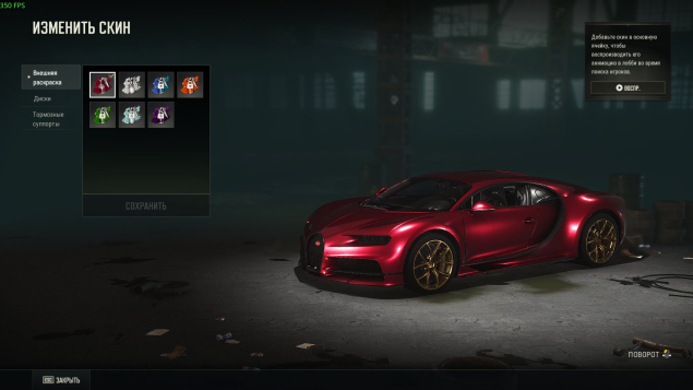 Bugatti CHIRON (Цвет RUBY + обвес); Парашют; Фулл стиль.