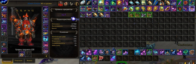 Всё подогнано под нужные статы. На маге крафт наручи и оружее, на шамане наручи и пояс на +к криту,