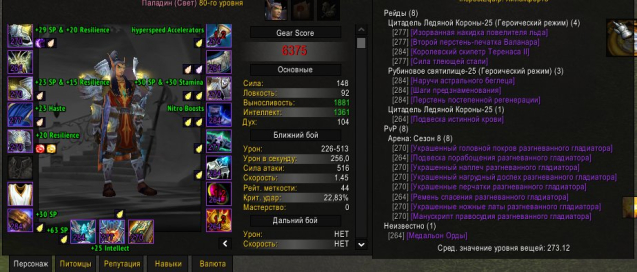 Отличный Паладос для похода в любые рейды. Просто Крушитель черепов! Есть Герой Нордскола. Маунт Непобедимый, Мамонт для подчинки, есть в сумке ещё 24 коинов за которые можно купить разные приколюхи. Перс Стоит своих денег на 100%. Есть много разного шмота и тринек.