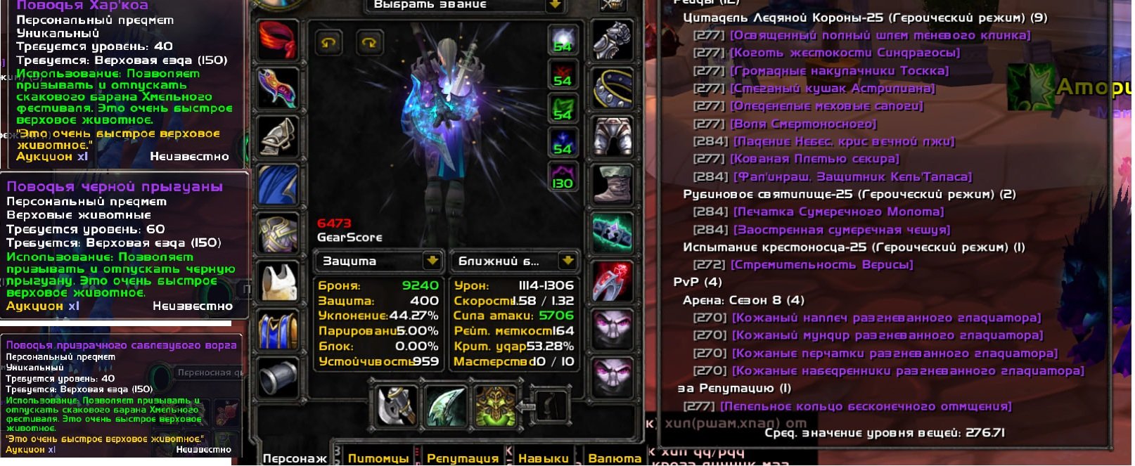 Краткое описание: Бис рог пве + 4\5 пвп (плечи есть), маунт с лутбокса, рубашки, прыгуана