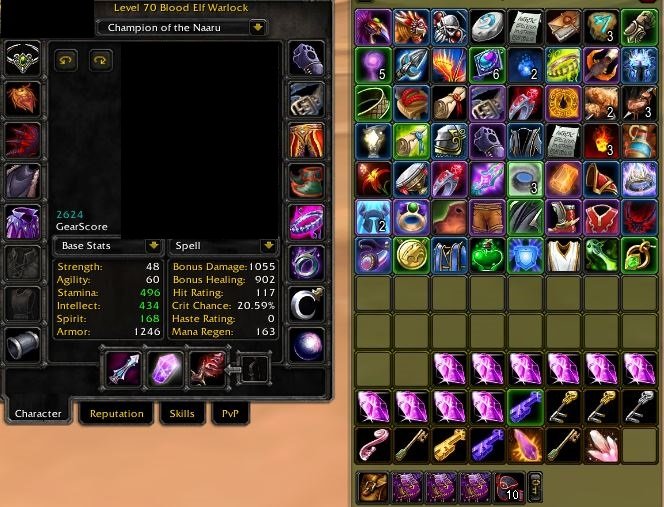 ☑ Эпик голова т4 и перчатки т4, собран бонус сэт (+135 spell shadow / spell fire)