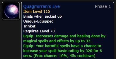 ☑ Око зыбуна тринкет 37 к урону заклинаниями и 320 бонус к скорости заклинаний прок, www.wowhead.com/tbc/item=27683/quagmirrans-eye