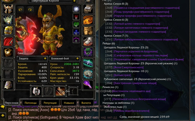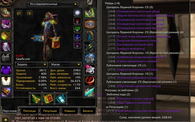 Подробное описание: х1 хант тролль 5022 гс, кожа 430, снятие 450 + х100 дру ноч эльф 6466 гс пве ферал, 6.2 сова бис трини, 5к ачив, вар гном 5.8 бис трини, рог 6170 бис трини