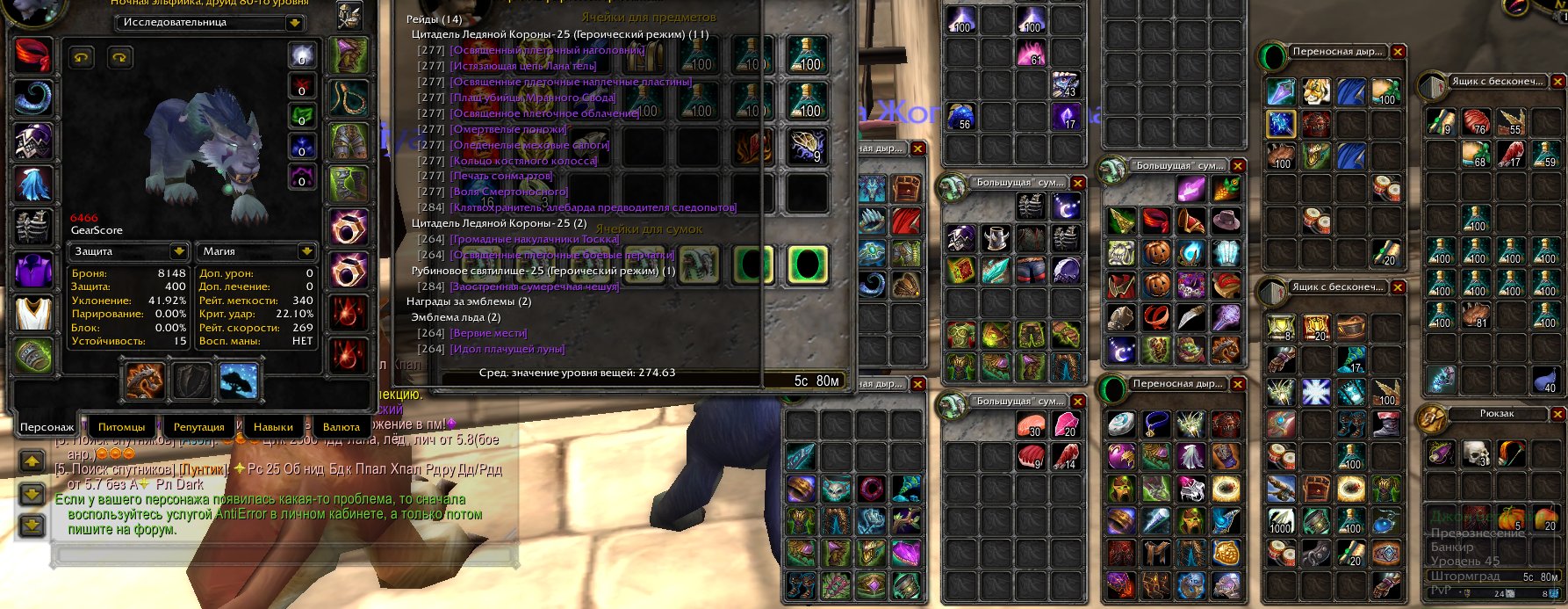 Краткое описание: ✅🔥хант тролль 5к кожа 430, снятие 450🔥 + друид х100 6466 гс ферал + другие персы✅