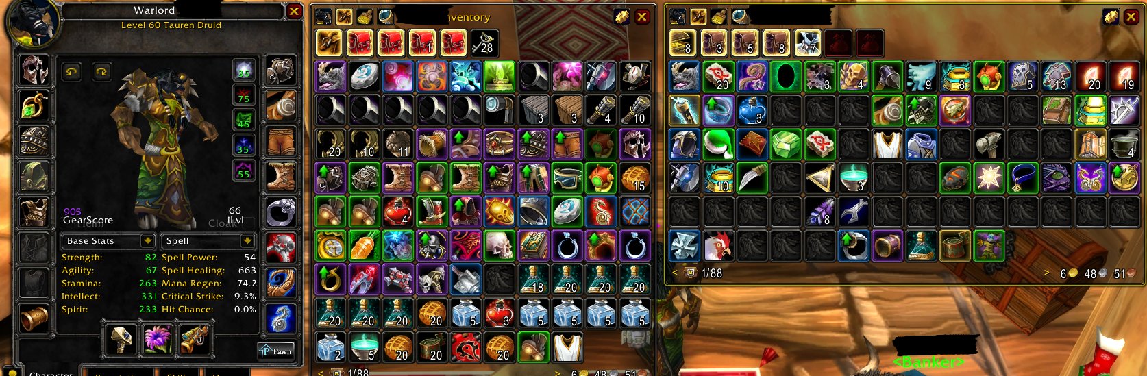Full t2+ some epic heal/feral items. R13 set. Perfect for warsong fc with tidal charm trinket + engineering.