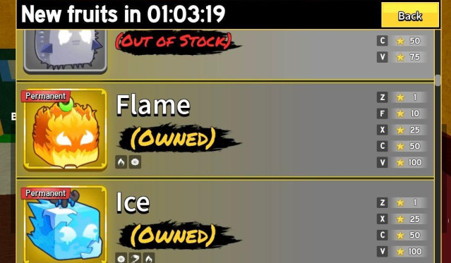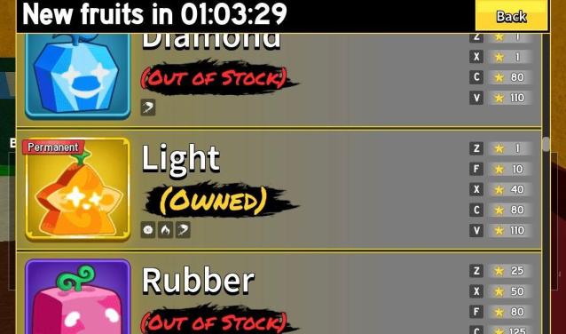 Так же есть перм фрукты: Тесто, Свет, Лед, Пламя, Лезвие.
