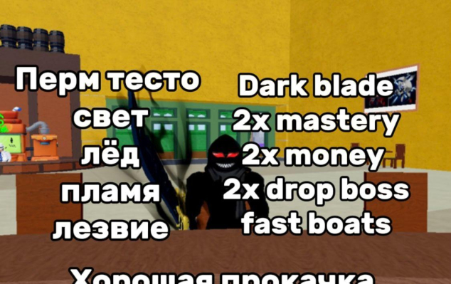 Dark blade(590 mastery), 2x Mastery, 2x Money, 2x Boss Drop, Fast Boats.