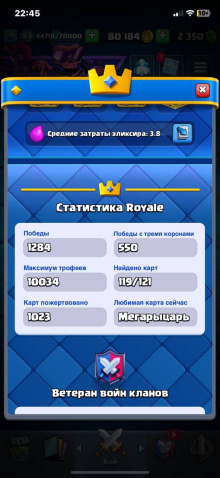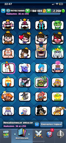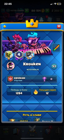 Сила (к): 53Краткое описание: Продам аккаунт клеш рояль 10 к кубков 5 эволюций