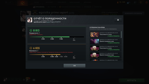 Краткое описание: 🩸1500 MMR🩸8813 ПОРЯДОЧНОСТЬ🩸УВЕРЕННОСТЬ 83%🩸ПОЛНЫЕ ДАННЫЕ🩸