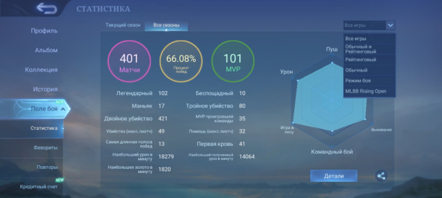 Процент побед: 66