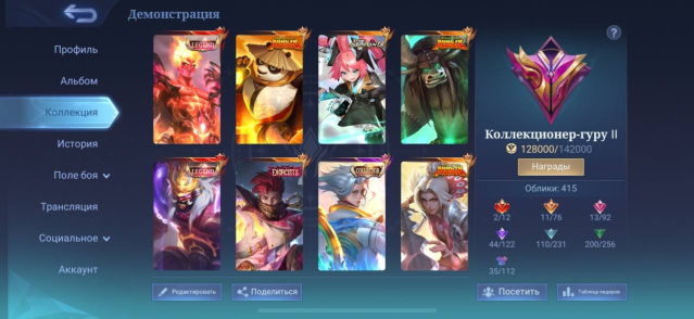 Краткое описание: Мой личный аккаунт, очень жирный, легендарные облики, Коллекторы,
