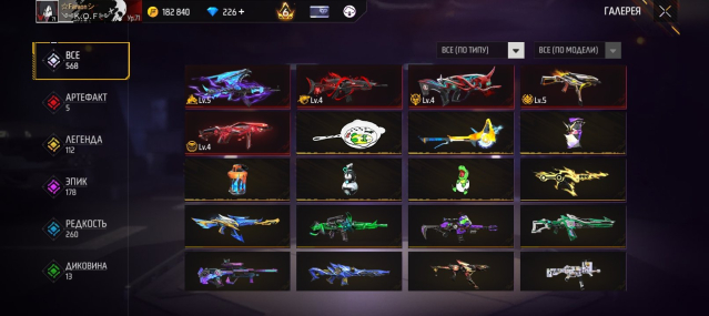 Много скинов на оружия
