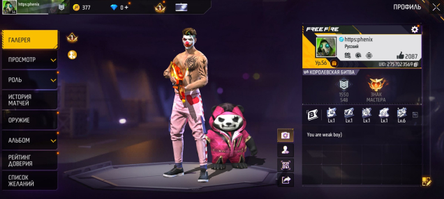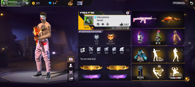 Подробное описание: Есть клоун🤡, и много скинов с инкубаторов