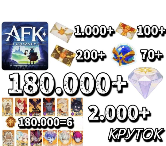 【Global】✅AFK Journey🟨2000КРУТОК🟥180.000 Aлмазов🟪