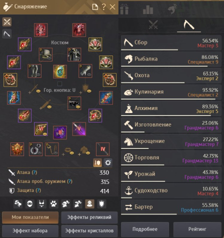 Само собой очень много всяких свитков, баффов и прочих ресурсов, премиумов, расширений инвентаря, оранжевых рабов, петов для разных ситуаций, камней и тд. Инфраструктура аккаунта делалась для комфортной игры.