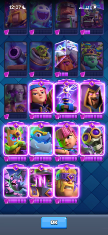 Подробное описание: на аккаунте 8500 кубков 14 ракетчица, 14 тесла, 13 быстрый майнер, 13 хог эво ракетчица эво дудец 5 осколков эволюции много эмоций