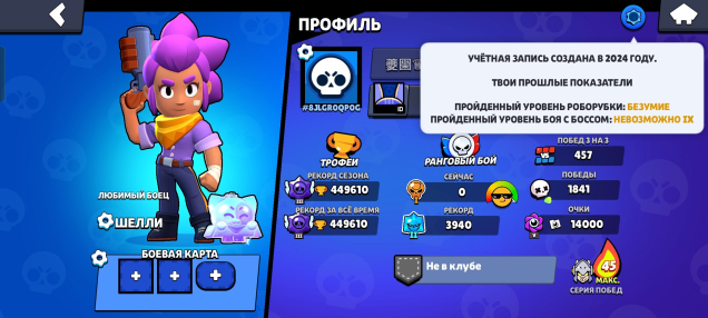 Краткое описание: Аккаунт 450к кубков, много бойцов на 10-12кПодробное описание: Аккаунт 450к кубков, много бойцов на 10-12к, отдаю без почты, отдаю коды чтобы вы привязали аккаунт на свой телеграмм