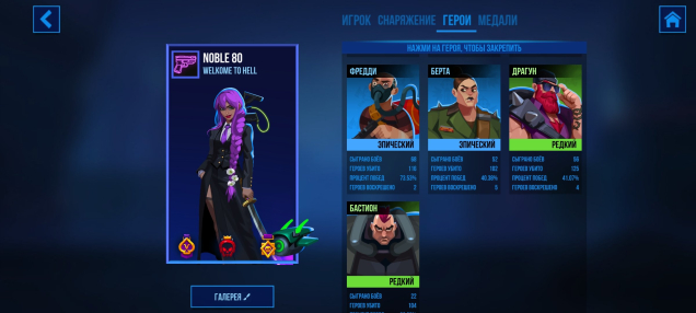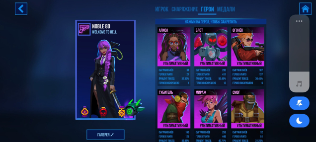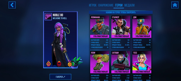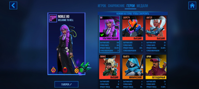 Краткое описание: 10000 кубков, 16 скинов, Android/iOSПодробное описание: На аккаунте открыто 28 героев из 34, из них 19 ультимативных, 3 высших, 1 мифический, 16 скинов