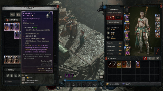 Andariel's Visage, Tyrael's Might, Shroud of False Death, Ring of Starless Skies