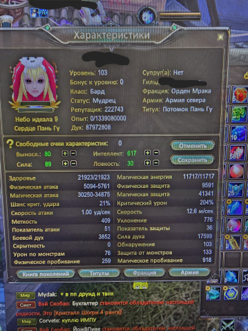 Бард 307 лвл ( 101-102 ост 18%)