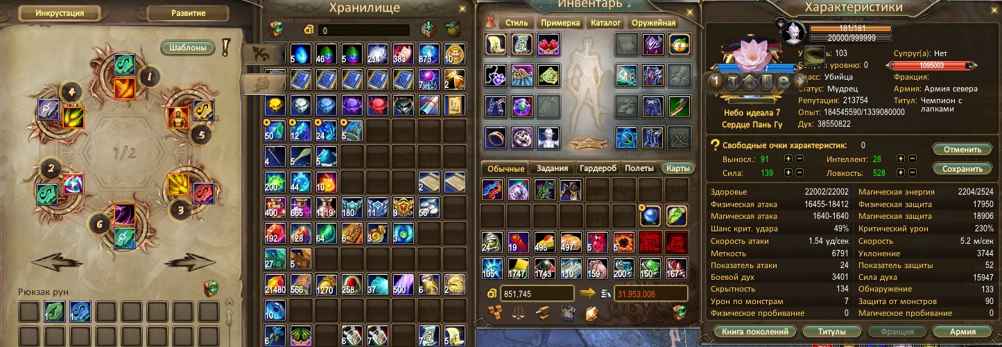 Подробное описание: 103 101 101 лвл, фулл хроники, почти закрыты цепочкии 49\65 все на скрине ( 6 випка )