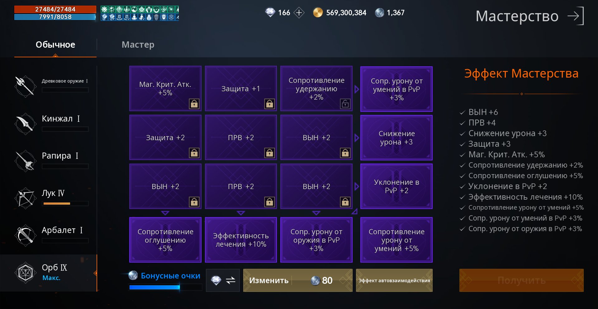 ⚔️ Мастерство: защита+инт+мдр все фиолетовые.