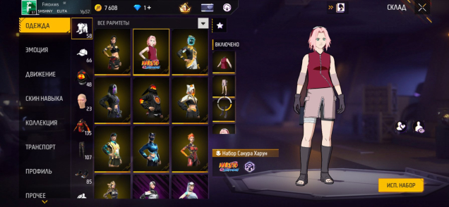 Подробное описание: ЕСТЬ СКИН КАКАШИ, САКУРА, и много купленных пропусков.