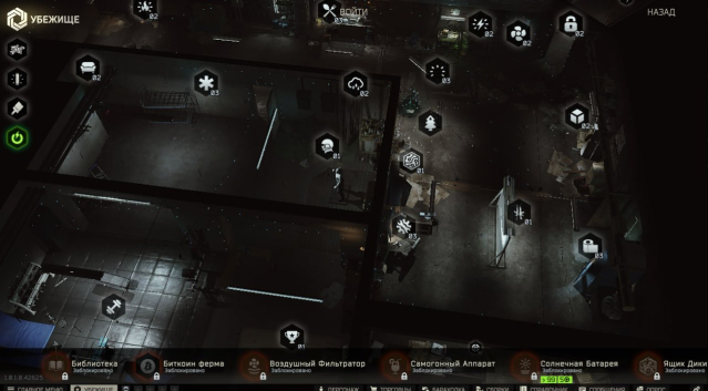 Круг культистов, Охрана 2, Тайник 2, Генератор 2, Вентиляционные отверстия 2, Туалет 3, Стойка с оружием 1, Верстак 3, Тир 1, Разведывательный центр 1, Освещение 3, Коллектор воды 2, Пищеблок 3, Зубчатая рейка 1, Зал славы 1, Тренажерный зал, Медпункт 3, Место для отдыха 2, Обогрев 2,