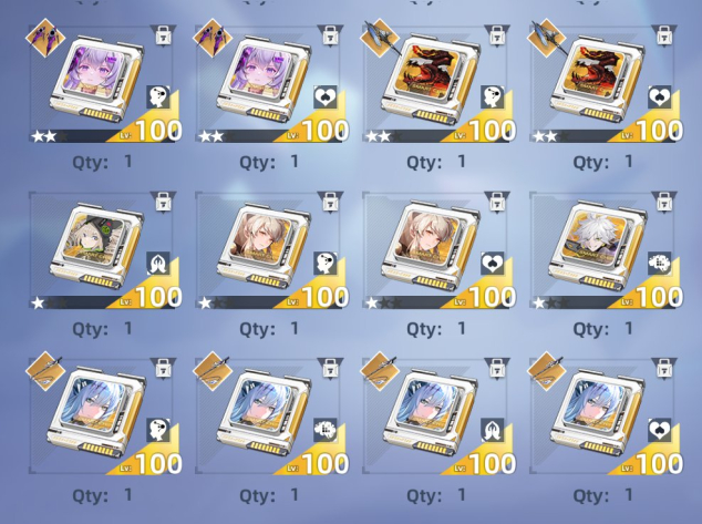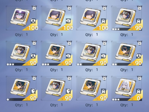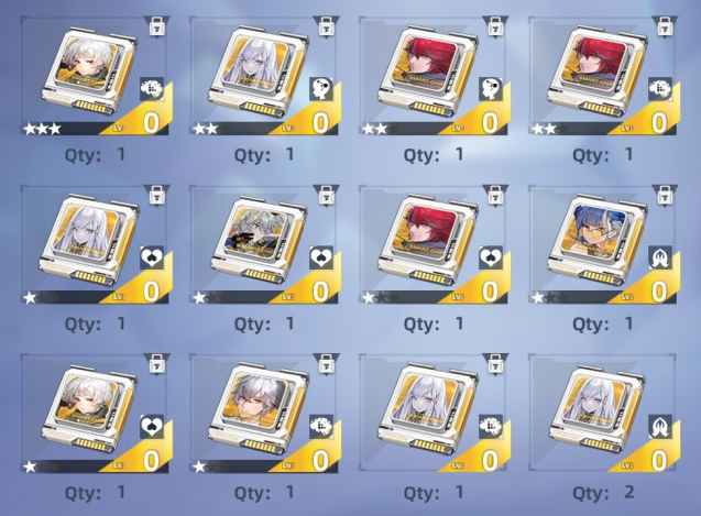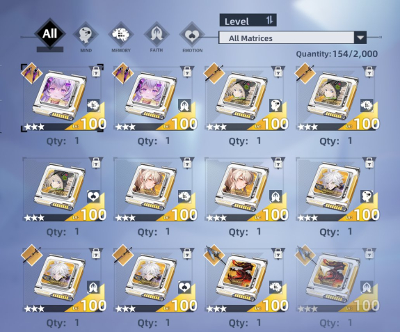50 + SSR matrices, Crow C3 x3, Shiro C3 x3, Samir C3 x2, Nola C0 x4, Nemesis Void C3 x2, C2 x2
