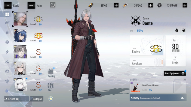 Платформа: AndroidКраткое описание: 【Europe】SSS Dante+6☆, 81669 всего тикетов, 4S Мета персонажей + 3 Селектора