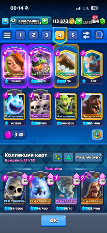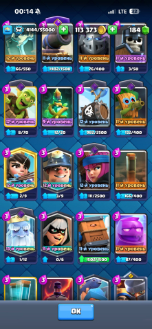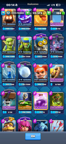 Подробное описание: Аккаунт clash royal, 52 уровень есть все карты 9500 трофеев, много эволюций