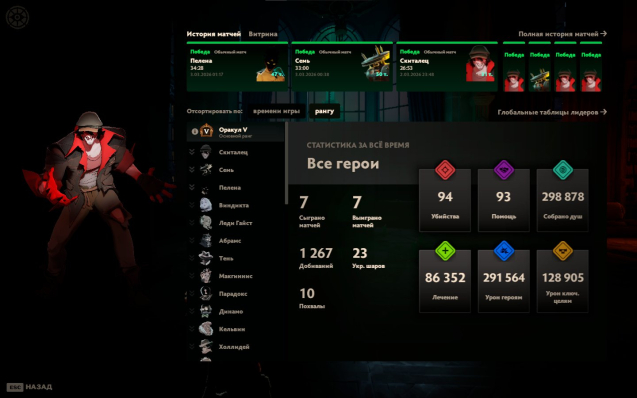 📊 Предоставляется отчет по каждой игре (результат, статистика, герой) по желанию