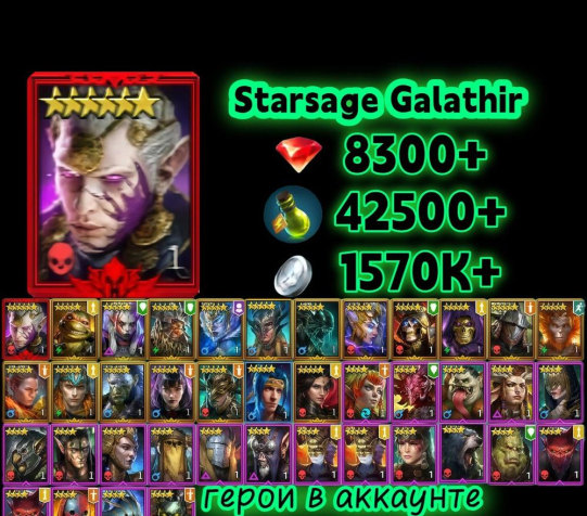 ♦ ПОЛНЫЙ ДОСТУП ♦ Starsage Galathir ♦ 8300+ Рубинов ♦ 44500+ Энергия ♦ СМОТРИТЕ ОПИСАНИЕ ♦♦ Эпических героев: 9