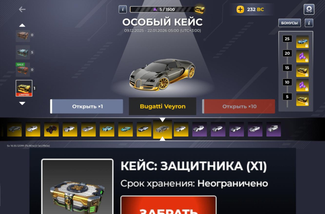 3) 1 кейс защитника (/reward).