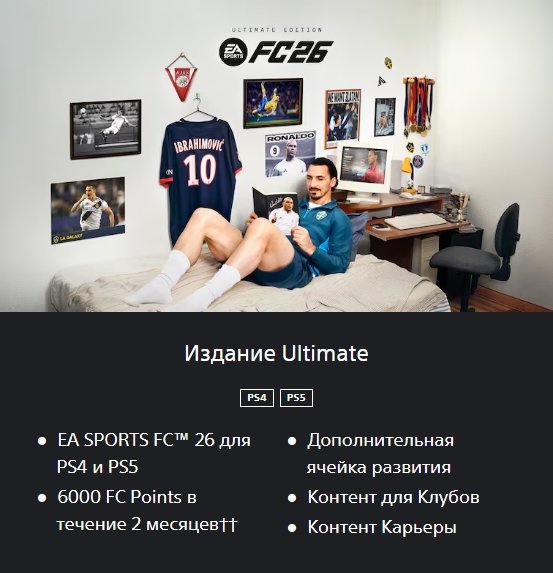 Тип предложения: ПродажаКраткое описание: ❤️🤍EA SPORTS FC™ 26 — Ultimate Edition🎮PS4 | PS5🎮На ваш или наш новый аккаунт🌍Регион — Турция🌍