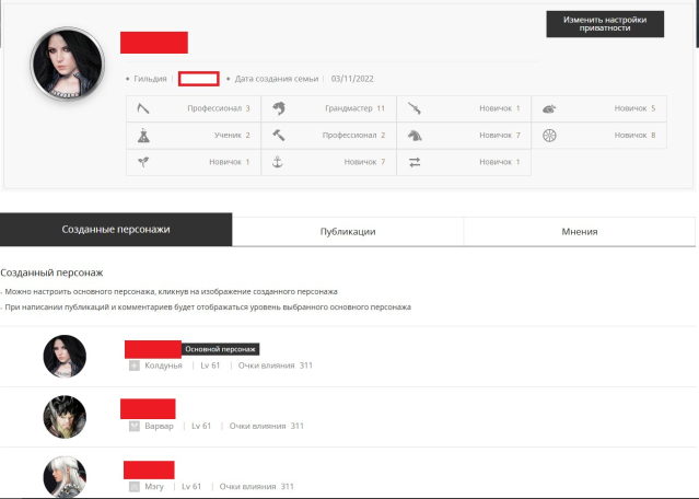 3) Основной персонаж «Колдунья» 61ур, остальные твинки.(Можно создать сезонного персонажа)