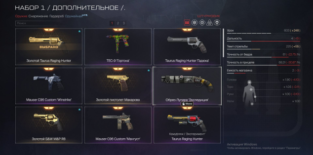 🥇Пистолеты: Золотой Taurus Raging Hunter, TEC-9, Золотой Пистолет Макарова, Mauser C96 Custom Winstrike, Золотой S&W R8, Золотой и обычный SIG Sauer P226 + Магма, Maxim 9 Эфир, ST Kinetics CPW, CZ 75 Czachmate Parrot Элита, Пистолет Макарова Эксперимент
