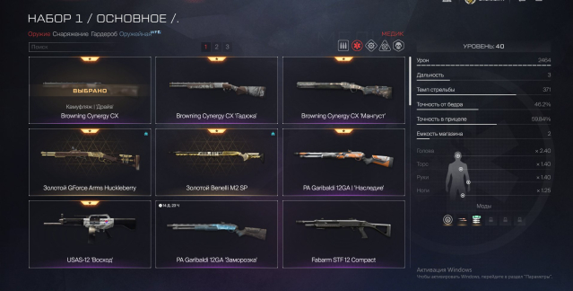 🥇Медик: USAS-12, Золотой GeForce Arms Huckleberry, Browning Cynergy CX, Золотой M2 SP, Fabarm STF 12 Compact, PA Garibaldi 12GA
