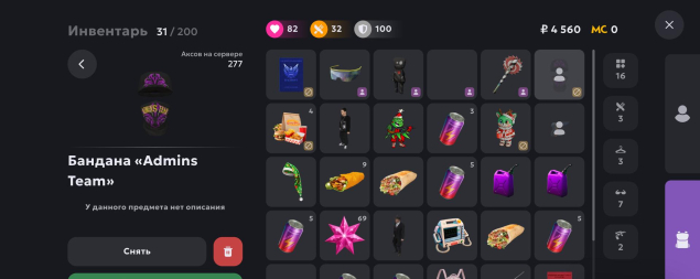 7. Админский аксессуар (был администратором именно на этом аккаунте)