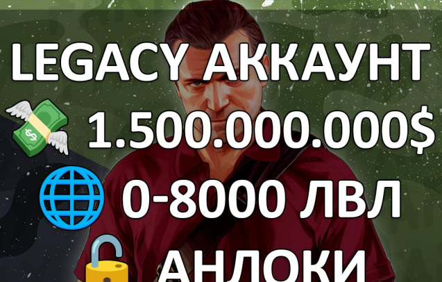 ⚡️ ПОЛНЫЙ ДОСТУП ⚡️ GTA LEGACY ⚡️ 1.500.000.000$ ⚡️ 1-8000 LVL ⚡️ РАЗБЛОКИРОВКИ ⚡️ СМОТРИТЕ ОПИСАНИЕ ⚡️Версия: Legacy